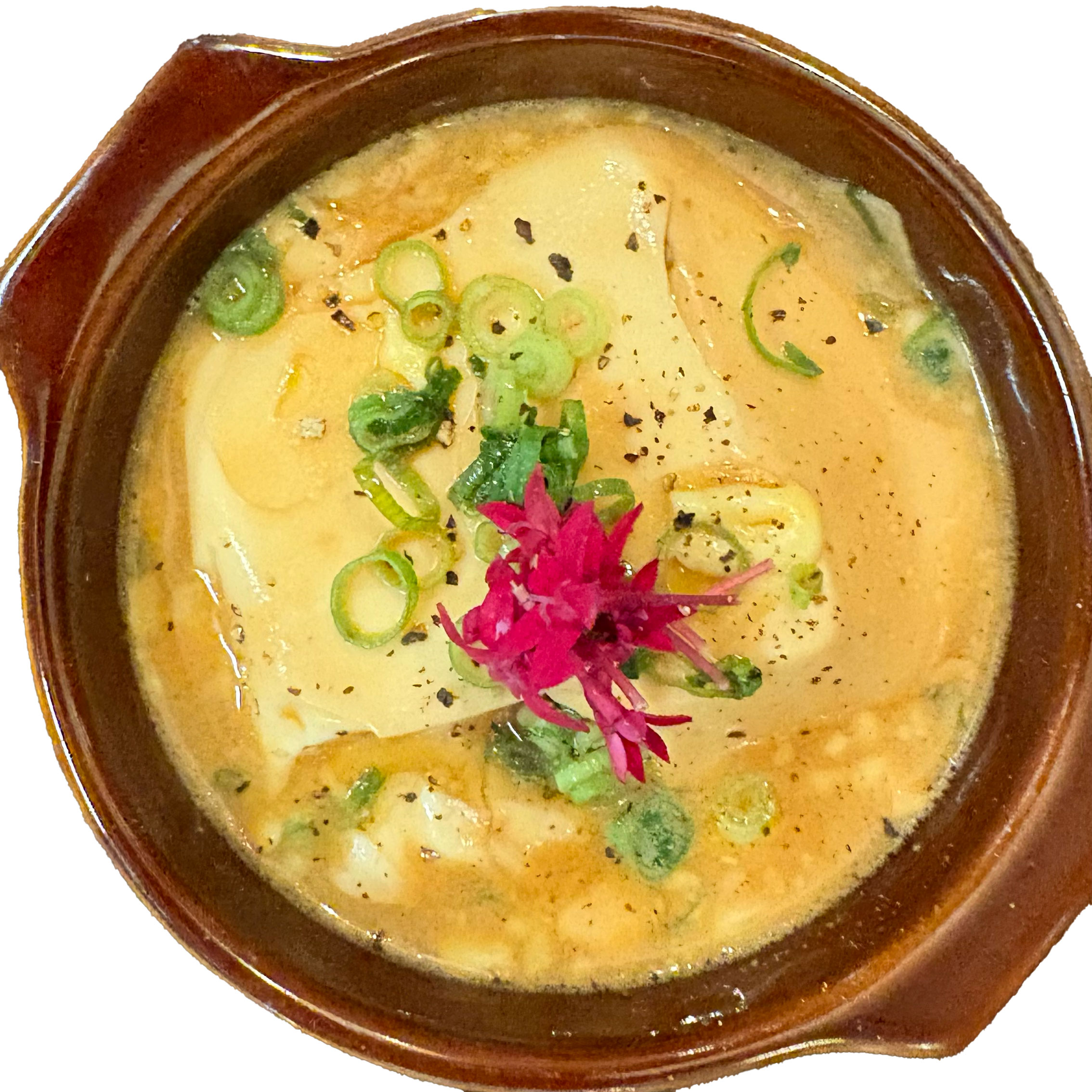 Warm tofu with garlic aroma and savory depth. Soy sauce base with mayo adds a satisfying kick while staying gentle on the palate.